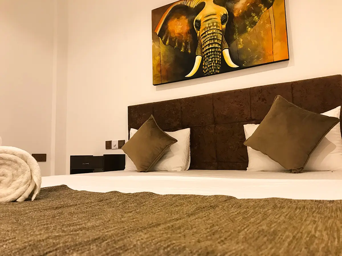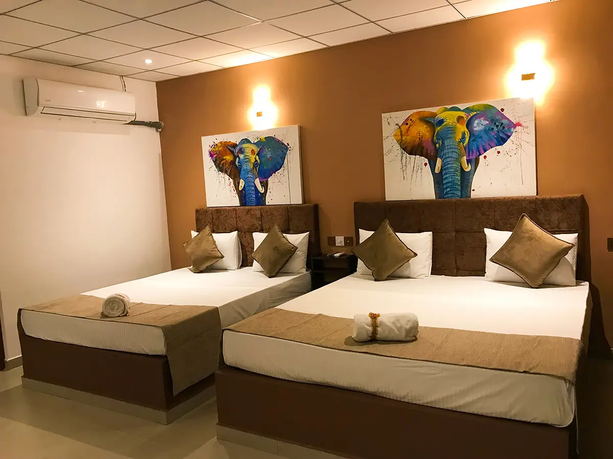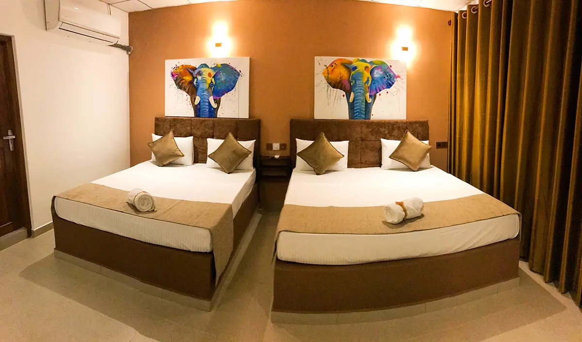 A spacious and welcoming family retreat featuring two king beds, warm interiors, and modern comforts, perfect for relaxing together after a day of adventure in Udawalawe.